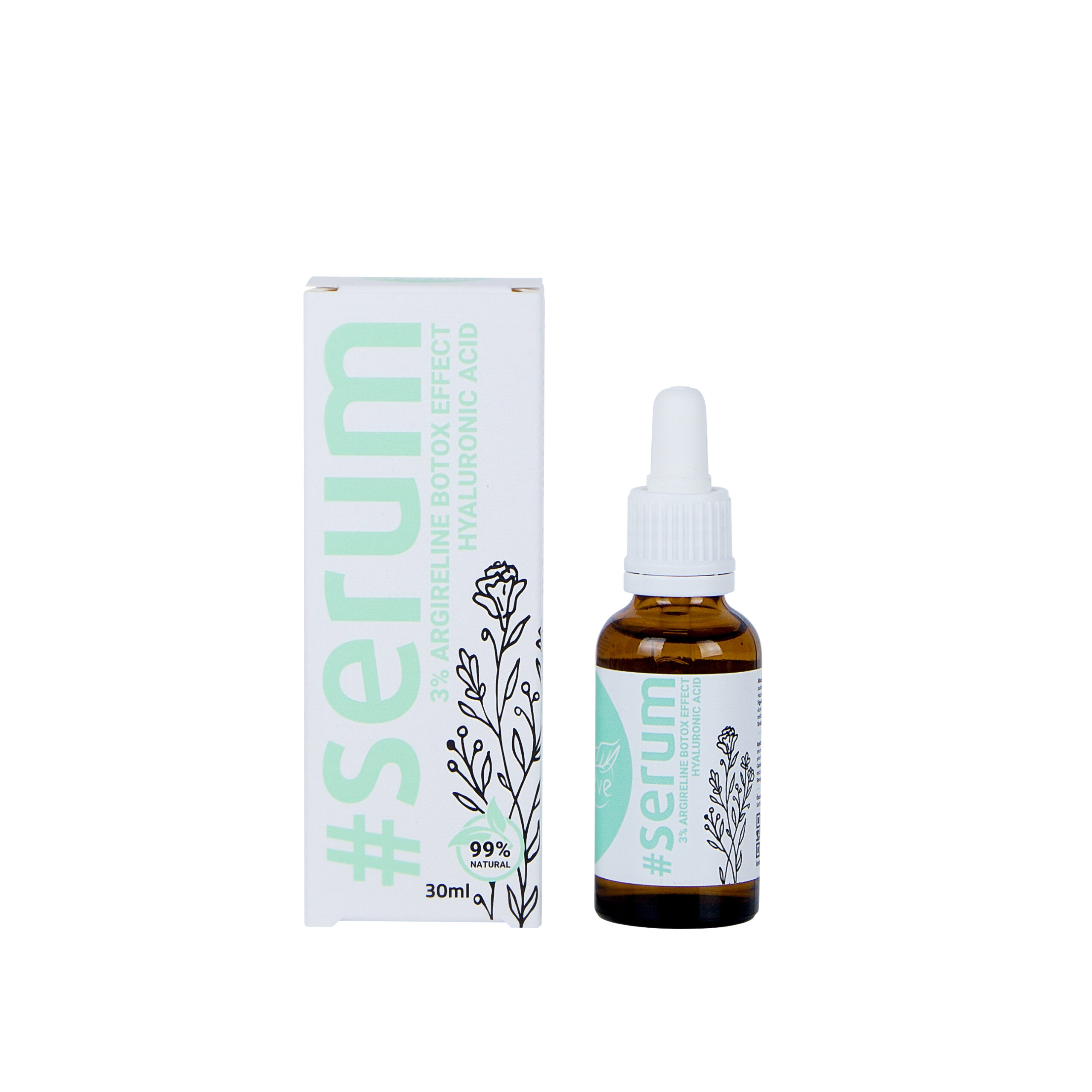 A booster és a krém mellé most megérkezett a termékcsalád harmadik tagja is, a KEVE Serum 3% Argireline botox hatású peptid + hialuronsav szérum is.