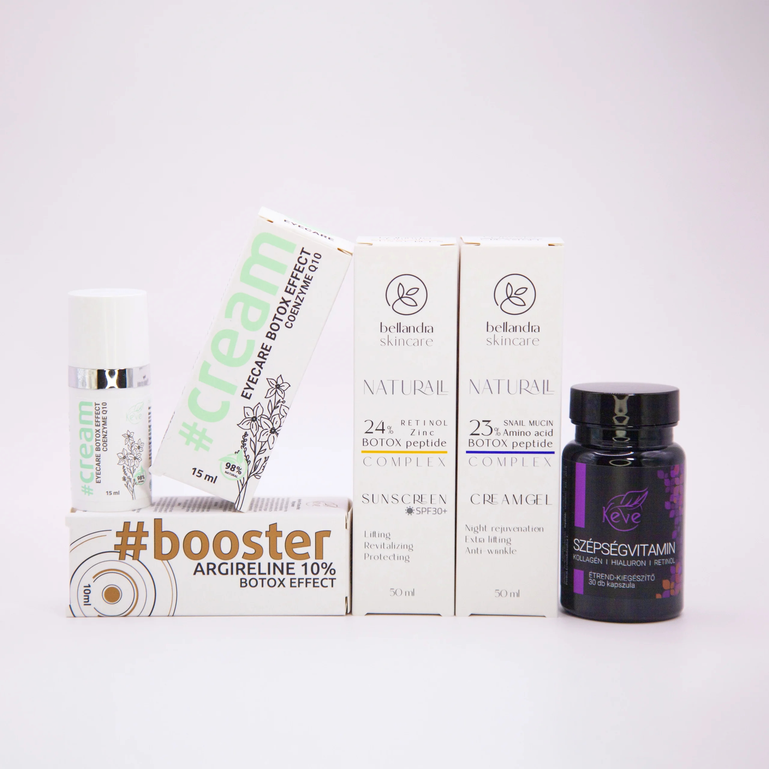 10% Argireline b.o.t.o.x hatású booster – Egyenletesen oszlass el 2-4 cseppet (arc, nyak, dekoltázs), gyengéden masszírozd be, és hagyd teljesen beszívódni a következő lépés előtt.